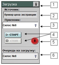 2. Источник подачи продукта. Для изменения источника выберите нужный силос из выпадающего списка.